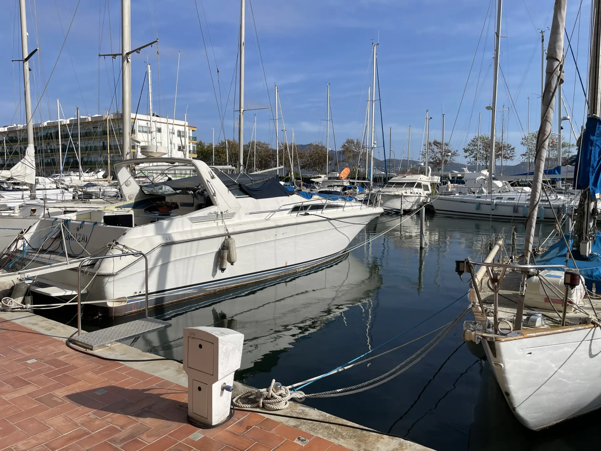 Mooring is empty and available at his moment. It is a private and very sheltered mooring in the better part of Empuriabrava (Port Royal). It's only 5 minutes from the mooring to Port exit. Electricity and water are available.